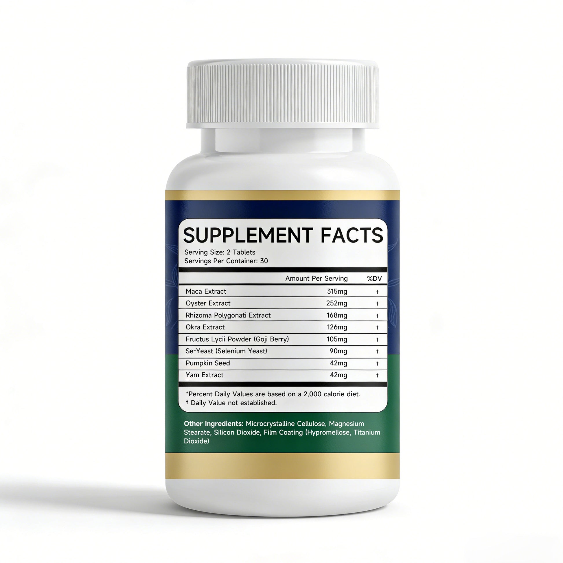 | Maca Extract | 315mg | Traditionally used to boost energy, reduce fatigue, and support hormonal balance & reproductive health. |