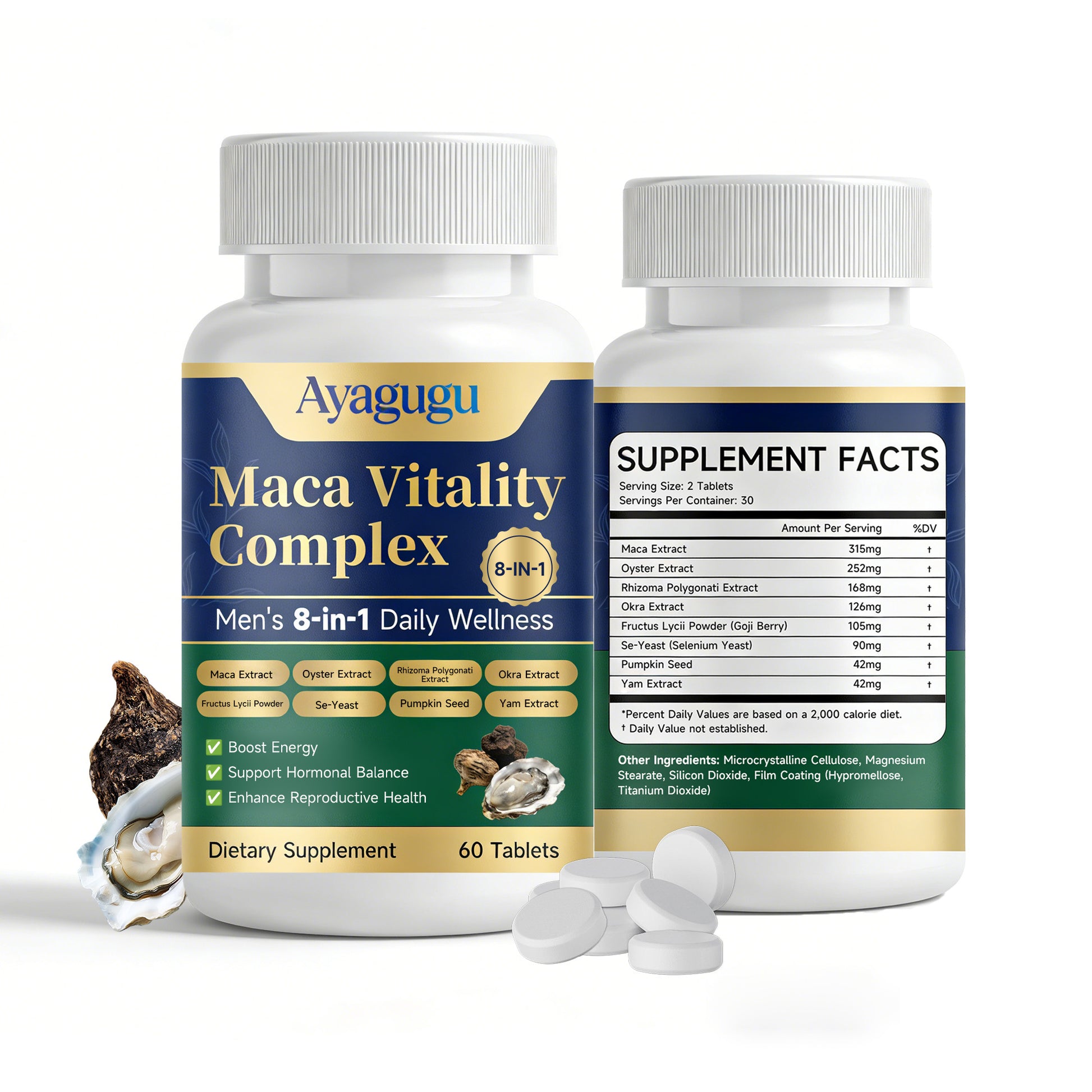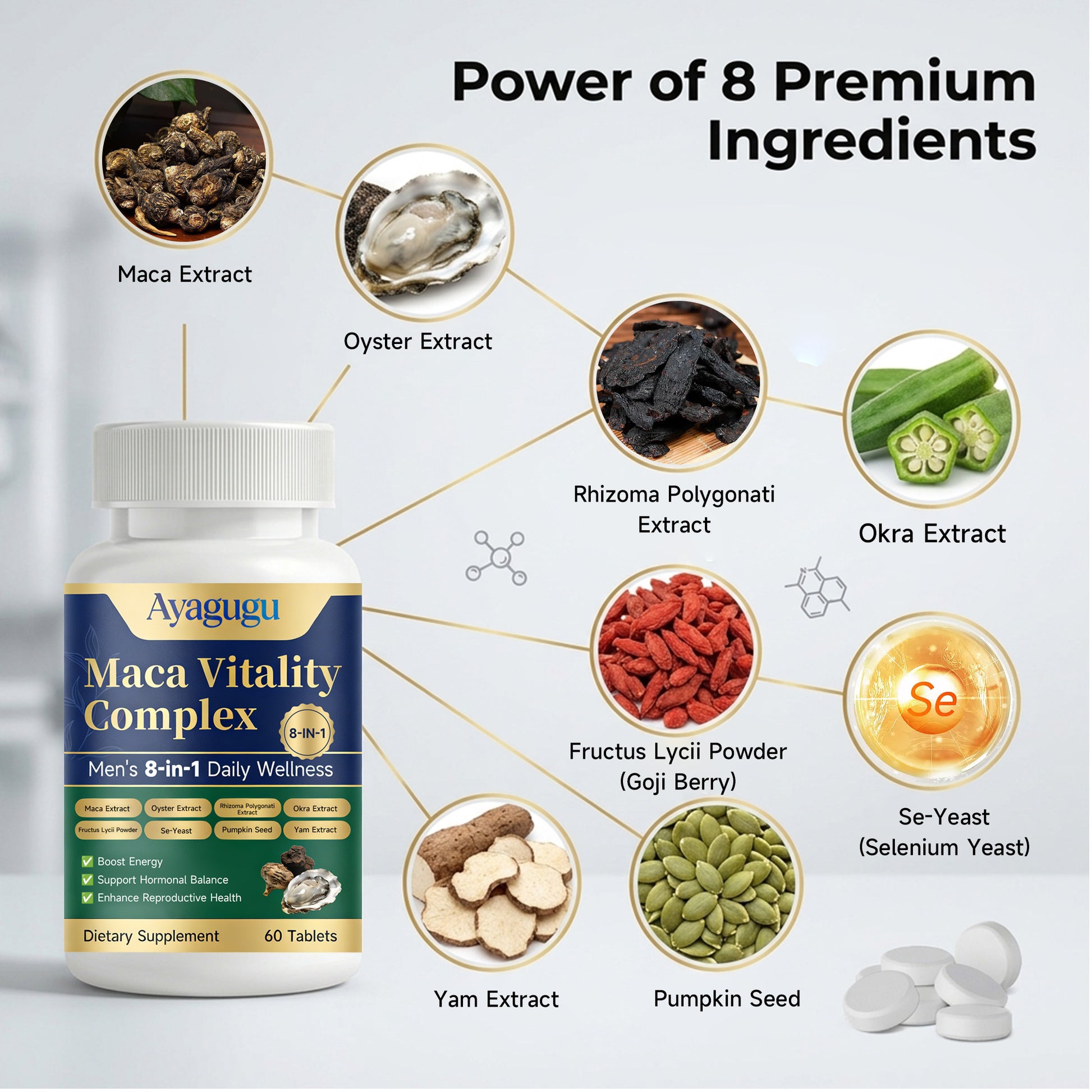 Ayagugu Maca Root 8 In 1 Capsules Plus Oyster Okra Pumpkin Yam Se-Yeast Fructus Lycii Rhizoma Polygonati Extract